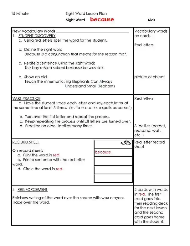 A comprehensive collection of sight word lesson plans. Includes worksheets for extra sight word practice.